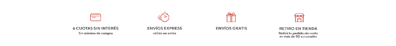 ENVÍO GRATIS Envío Estándar Gratis a todo el país. En compras mayores a $150.000 Retiro en sucursales Gratis. En más de 50 puntos oficiales en todo el país. VER MÁS