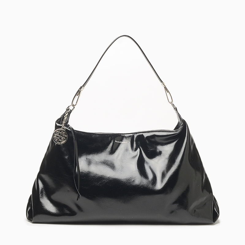 La cartera Hush Puppies Taggia color negro, diseñada para llevar al hombro, está confeccionada en material sintético blando al tacto con acabado brilloso y vetas que imitan el cuero natural. Posee ornamento colgante metálico con ID de marca, acceso principal con cierre e interior forrado en tela a tono con bolsillo plaque y bolsillo con cierre para una mejor organización. Medidas: alto 29 cm, ancho 52 cm y profundidad 8 cm.