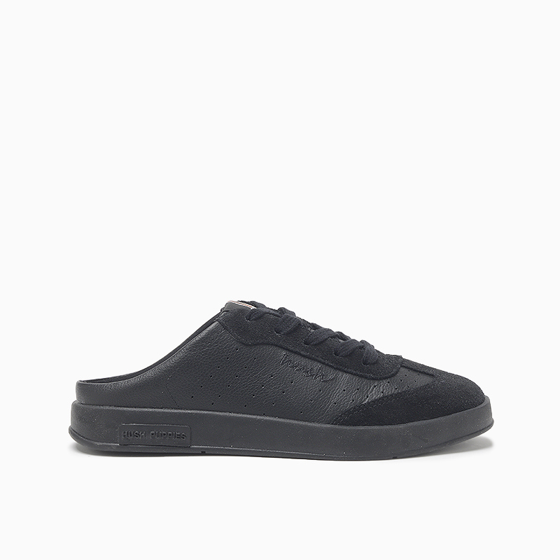 La Zapatilla Hush Puppies Akira color negro confeccionada en cuero descarne picado, con logo bordado en el lateral que aporta un detalle distintivo. Incorpora una plantilla en material sintético con identificación de la marca en alto relieve, que brinda una pisada confortable. Su suela de material sintético resistente cuenta con identificación de la marca, ofreciendo buen agarre y durabilidad para el uso diario.