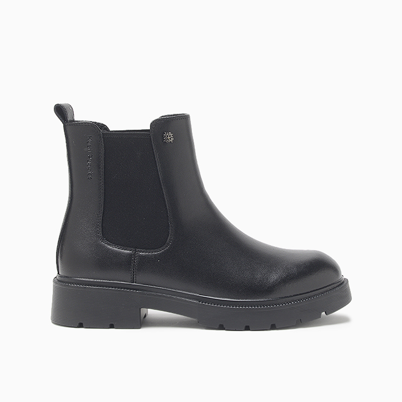 La bota Hush Puppies Lucera color negro incorpora una tecnología que ofrece protección avanzada frente a la humedad, manteniendo los pies secos sin sacrificar comodidad ni estilo. Está desarrollada con costuras selladas, cuero impermeable y materiales especializados que evitan la filtración de agua, permitiendo un uso diario confortable gracias a sus membranas transpirables y suela acolchada, esta es la tecnología WeatherSMART™. Presenta un diseño práctico con elásticos laterales que facilitan el calce, remache metálico y cuño con identificación de la marca que aportan carácter al modelo. El fondo liviano de material sintético brinda estabilidad y confort en cada paso, con una altura total de 3,5 cm, ideal para acompañar jornadas largas con seguridad y estilo.