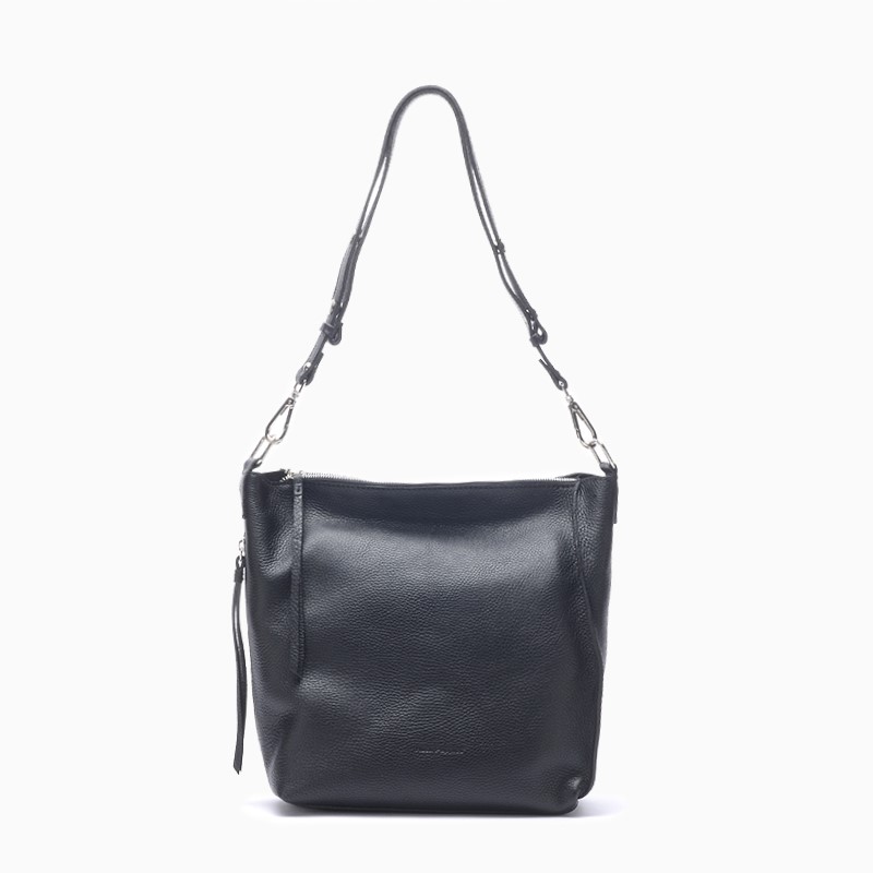 Cartera Hush Puppies de cuero vacuno de alta calidad, estructura firme. Acceso a través de cierre metálico; con dos correas para mano, y correa principal desmontable en cuero. Bolsillo interno.