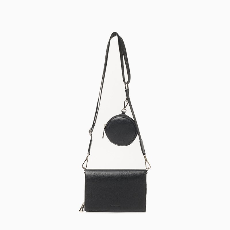 La bandolera Hush Puppies Bada color negro presenta un diseño estructurado y refinado. Está confeccionada en material sintético con acabado graneado. Dispone de tapa como cierre principal con botón imán, bolsillos internos con dos tipo plaque y otro central con cierre que incluye compartimiento para tarjetas. La correa es desmontable y regulable, personalizada con la identifiacion de la marca. Además, incluye un monedero desmontable con cierre. Medidas: alto 14 cm, ancho 19,5 cm y profundidad 6 cm.