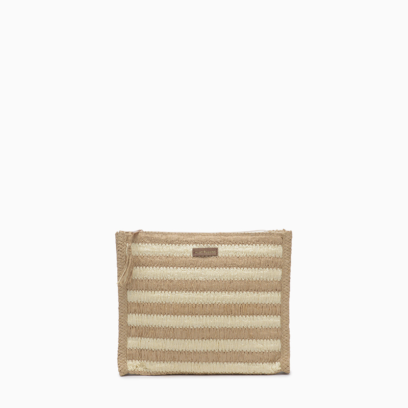 La Cartera Hush Puppies Livorno color beige está tejida en fibras naturales con un diseño rayado bicolor que aporta un estilo fresco y artesanal. Presenta una badana marcaria en cuero ecológico al frente que realza su identidad. Cuenta con apertura principal con cierre y un bolsillo interno ideal para pequeñas pertenencias. Su interior está forrado en tela sintética. Medidas: alto 24 cm / ancho 30 cm / profundidad 4 cm.