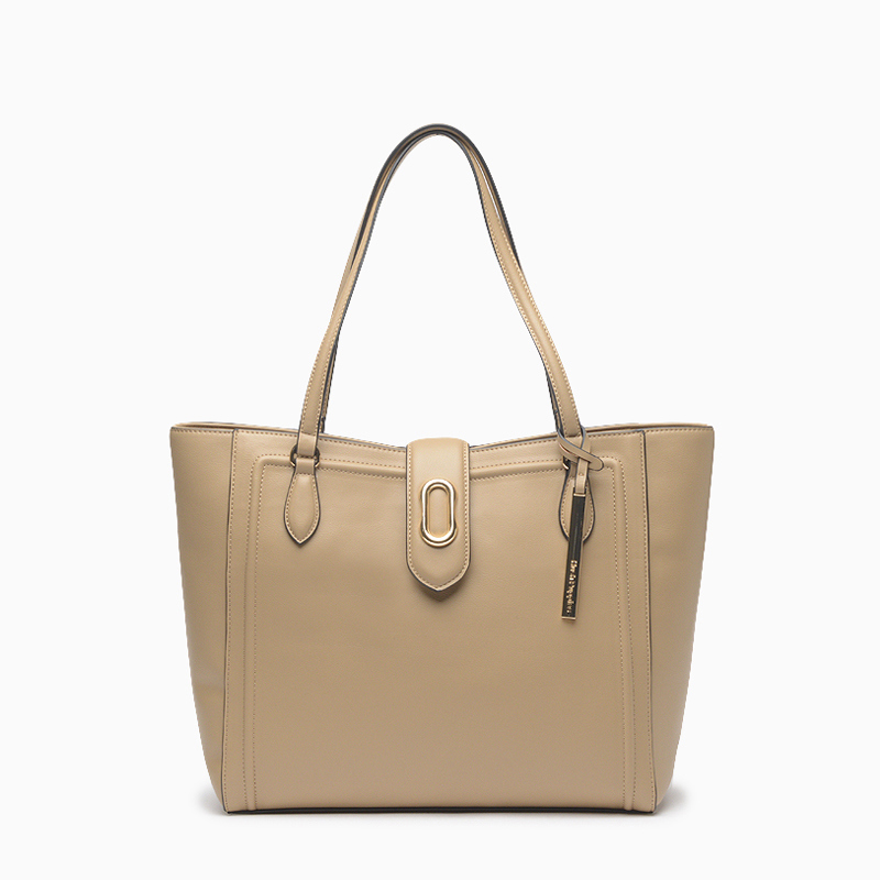La Cartera Hush Puppies Bosa color beige está confeccionada en cuero ecológico con acabado liso y diseño estructurado, ideal para el uso diario o de oficina. Presenta doble asa larga fija para llevar al hombro y solapa frontal con broche magnético decorado con aplique metálico en tono dorado. Incluye un colgante metálico grabado como accesorio ornamental. Su acceso principal es mediante cierre metálico que garantiza seguridad y practicidad. Sus dimensiones son 44 cm de ancho, 28 cm de alto y 9 cm de profundidad.