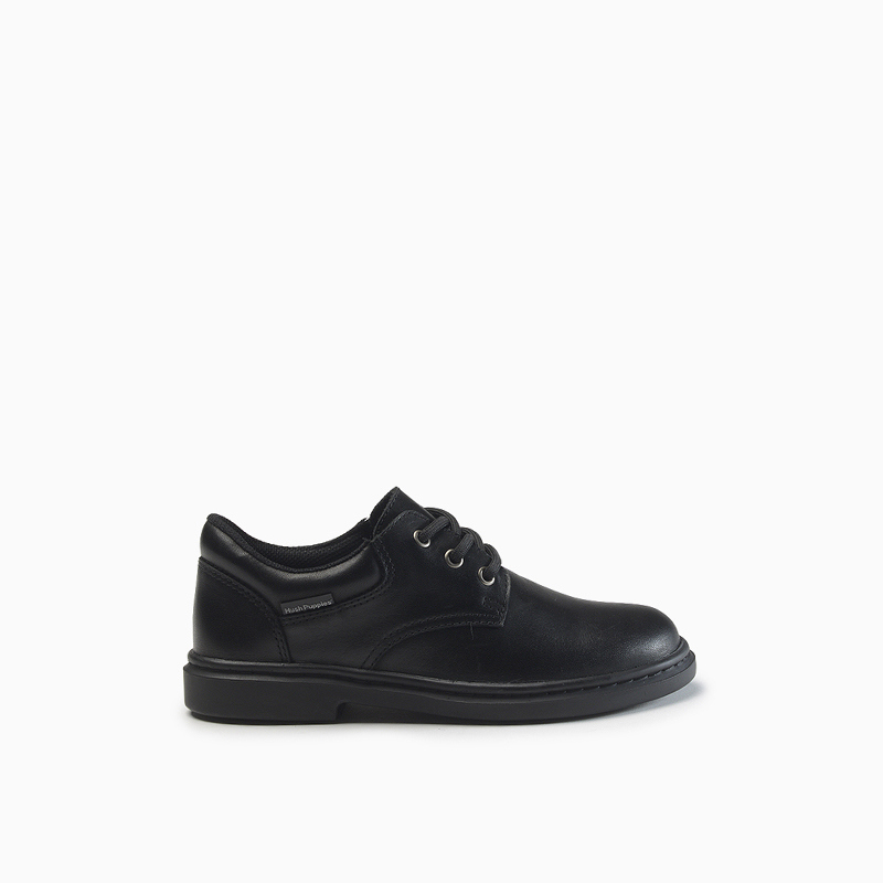 Los zapatos Hush Puppies Brutus Colegial en color negro están confeccionados en cuero negro, con un diseño acorde a un estilo clásico y funcional. Incluyen un aplique plastisol en el perfil con la identificación de la marca, añadiendo un toque distintivo. El fondo de material sintético negro proporciona una suela duradera y flexible, con una altura de 2,2 cm, asegurando confort durante todo el día. Ideal para quienes buscan un calzado cómodo, resistente y con un diseño versátil.