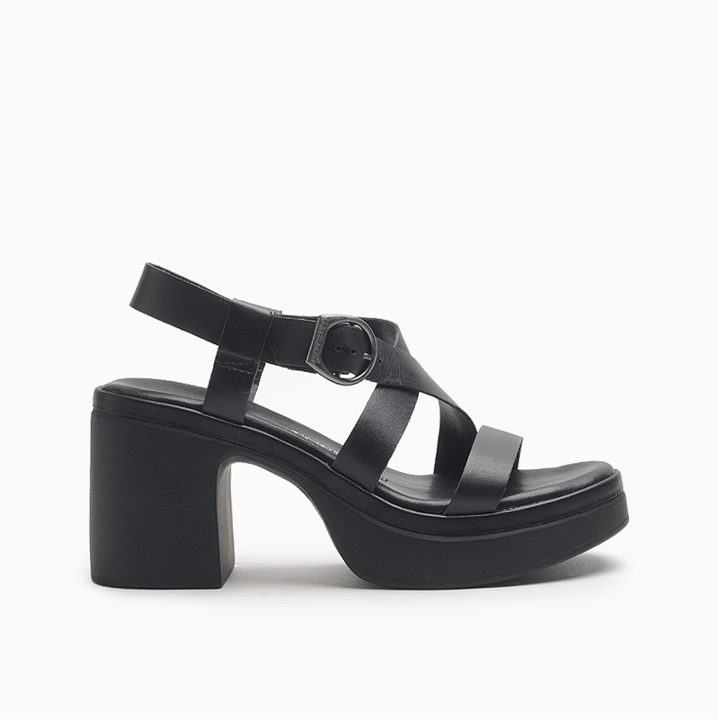 La Sandalia Hush Puppies Isabel color negro está confeccionada en cuero con diseño de tiras cruzadas en el empeine y pulsera con aplique de hebilla metálica grabada con la marca. Incorpora plantilla forrada con identificación Hush Puppies que asegura comodidad en cada uso. Su fondo de material sintético presenta plataforma y taco con efecto madera, aportando un estilo moderno y versátil. La altura total del fondo completa el diseño, brindando estabilidad y confort para el uso diario.