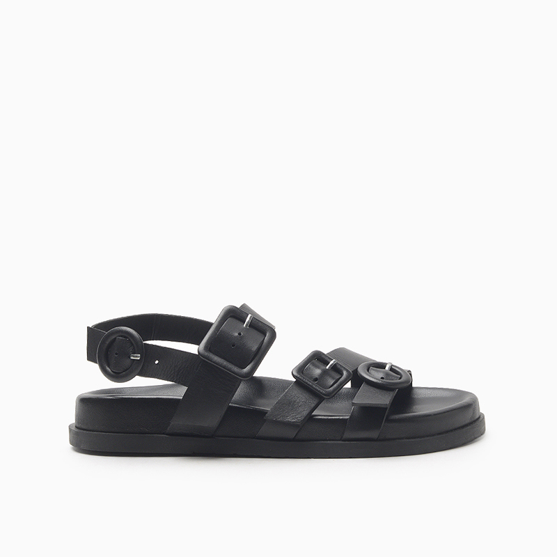 La Sandalia Hush Puppies Isla color negro está confeccionada en cuero con diseño de múltiples tiras adornadas con hebillas forradas al tono que aportan estilo y firmeza al calce. Incorpora plantilla forrada al tono, súper confortable y con la identificación de la marca, mientras que el suelín de goma antideslizante brinda seguridad y estabilidad. La altura total es de 1 cm.