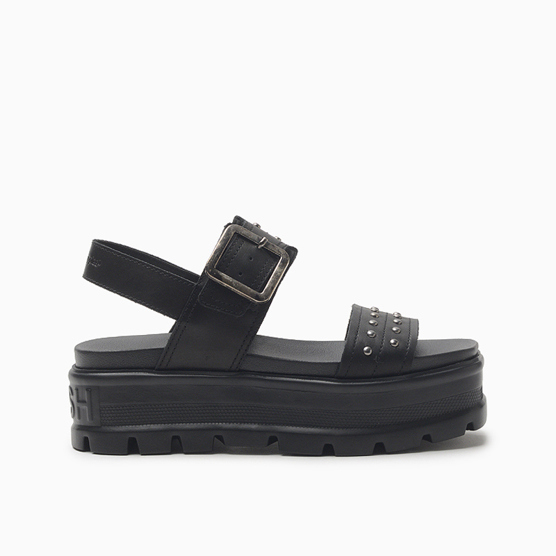 La Sandalia Hush Puppies Mandy Bis color negro cuenta con suela y capellada construidas con materiales súper livianos que casi no pesan, permitiéndote moverte con facilidad durante todo el día y absorbiendo el impacto de cada paso para un confort excepcional, esta es la tecnología Zero G. Presenta doble faja en cuero adornada con tachas circulares y hebilla metálica que aportan un estilo moderno. Su plantilla de EVA soft con identificación de la marca ofrece una pisada cómoda, mientras que el fondo de EVA con inserto de suelín antideslizante a contra tono brinda estabilidad y seguridad. La altura total es de 4,5 cm.