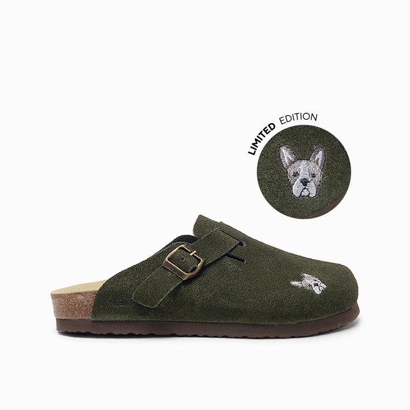 La nueva edición limitada Dog Lovers Party color verde interviene nuestros zuecos Craft Classics con un giro fresco y exclusivo: seis versiones bordadas de distintos perros para que puedas encontrar al tuyo! Confeccionados en cuero genuino y base anatómica de corcho, mantienen el diseño y el confort de Hush Puppies para quienes viven la conexión con su perro como parte de su estilo.
