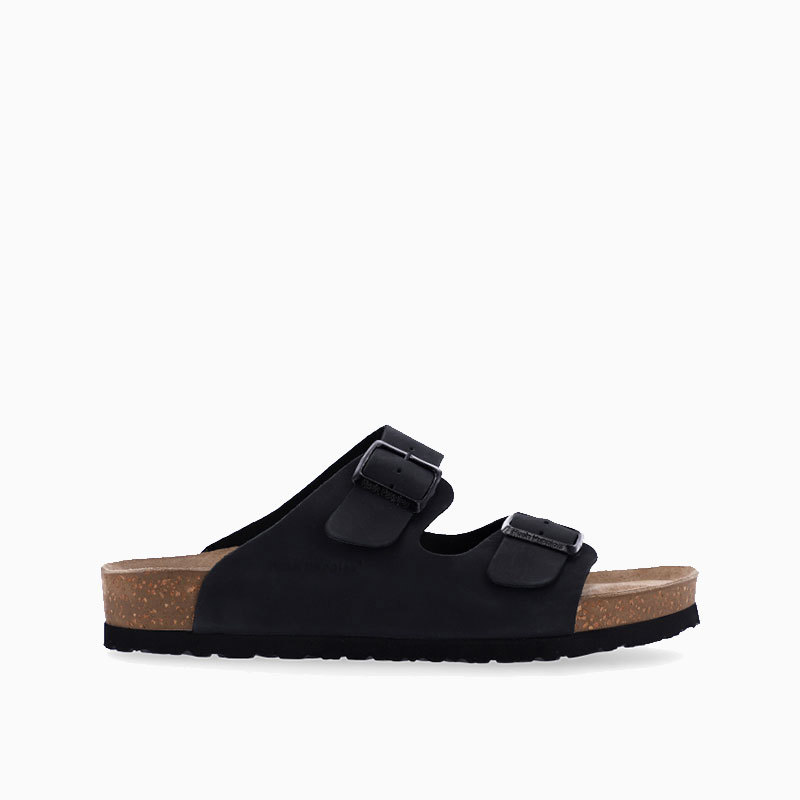 La sandalia Hush Puppies OLD B II color Negro ofrece un diseño práctico y confortable gracias a su confección en nobuck con doble hebilla metálica, que permite ajustar el calce de forma precisa. Incorpora una plantilla anatómica compuesta de corcho y caucho que brinda excelente soporte al caminar, complementada por un suelín de EVA que aporta ligereza y amortiguación. Es una opción ideal para quienes buscan comodidad sin perder estilo en los días de calor.